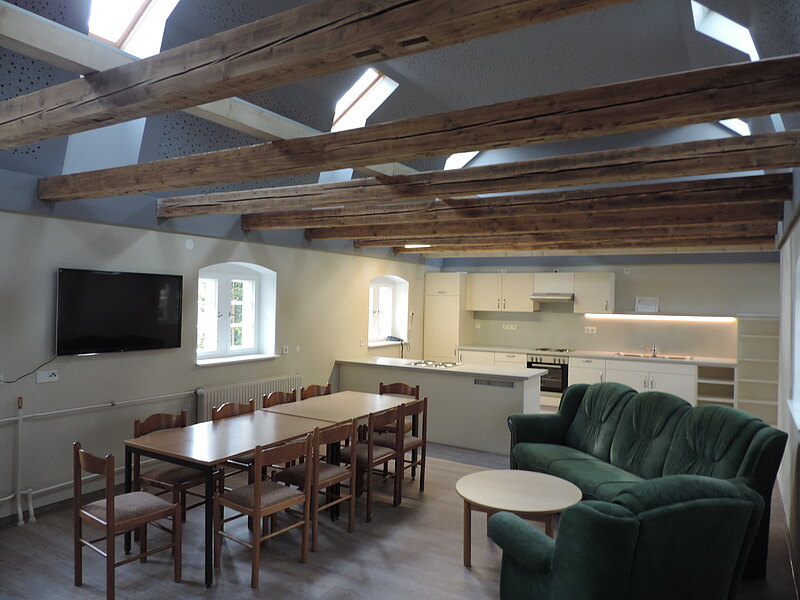 - Gemeinschaftsraum mit vollausgestatteter Küchenzeile und gemütlicher Fernsehecke